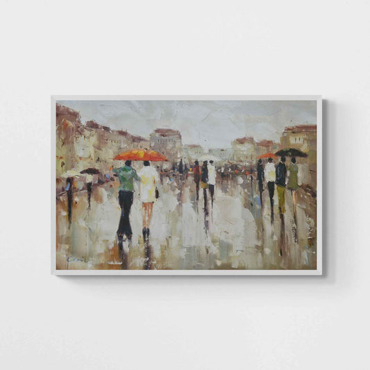 Abstract Oil Painting of Urban Crowd 110x80 cm