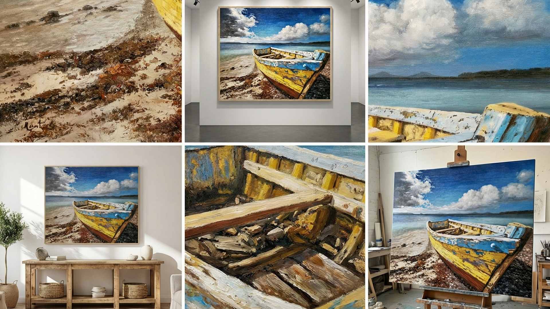 Yellow Boat on the Shore – Hand-Painted Oil Painting 80x100 cm