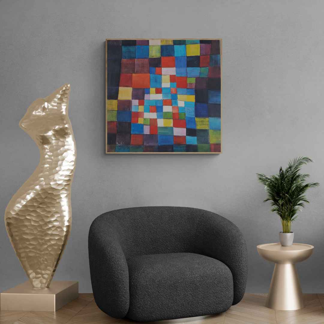 Discover the harmony of color and form with the 80x80 cm "Oil Abstract" painting, a hand-painted abstract masterpiece . Created with oil on canvas, this piece features a vibrant mosaic of geometric colors that add depth and dynamism to any space. Its contemporary design makes it a perfect choice for those seeking modern and sophisticated decor.