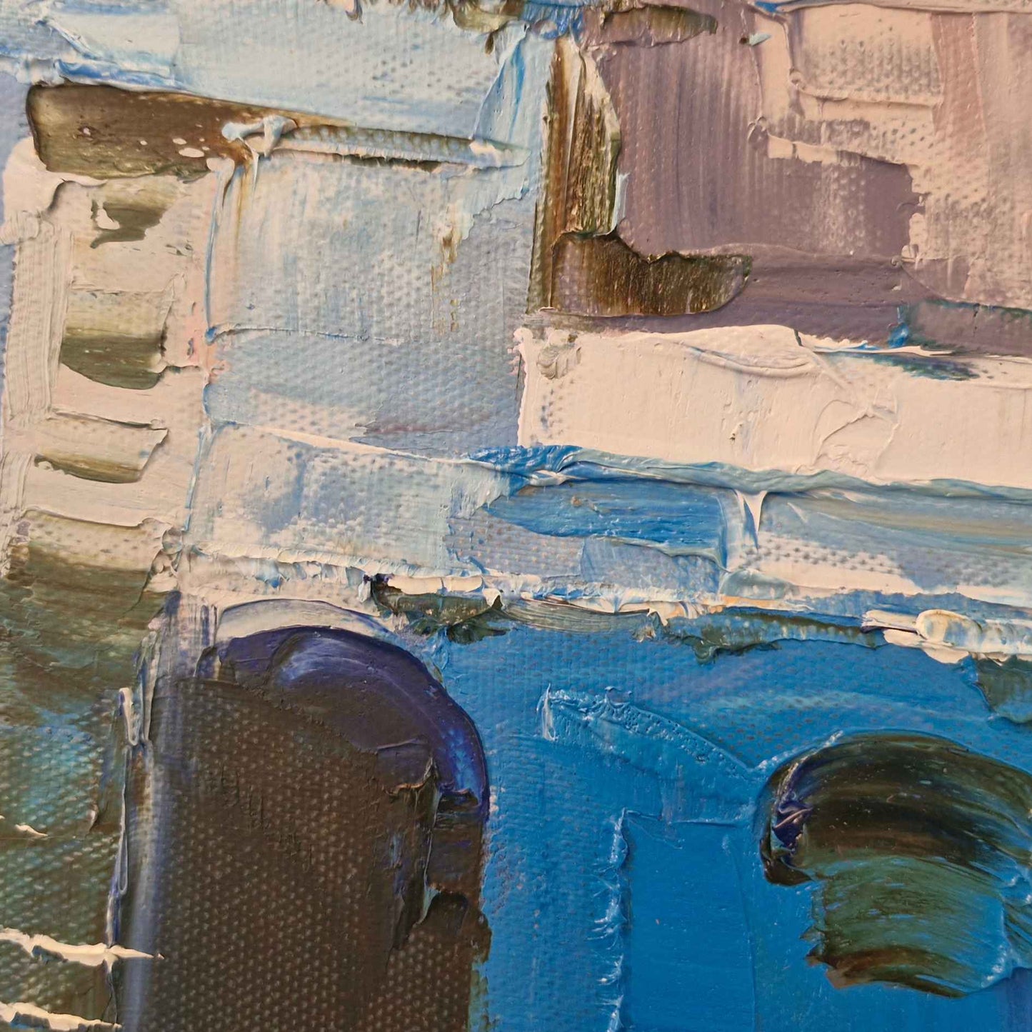 Ciudad Azul 103x103 cm - Cuadro Urbano Pintado a Mano al Óleo Inspirado en Chefchaouen