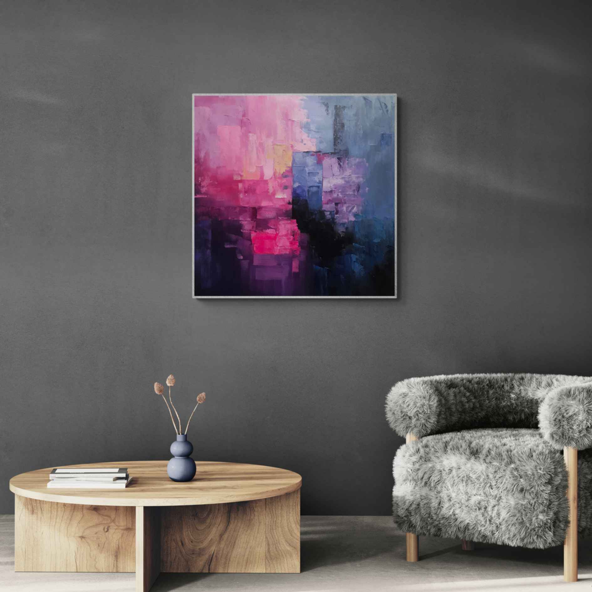 Transforma cualquier espacio con la elegancia y profundidad del cuadro "Abstracto Mix" de 100x100 cm, una pieza exclusiva de arte pintada a mano al óleo sobre lienzo. Su vibrante combinación de tonos rosas, lilas y azules fusiona modernidad y sofisticación, creando un impacto visual cautivador en cualquier ambiente.