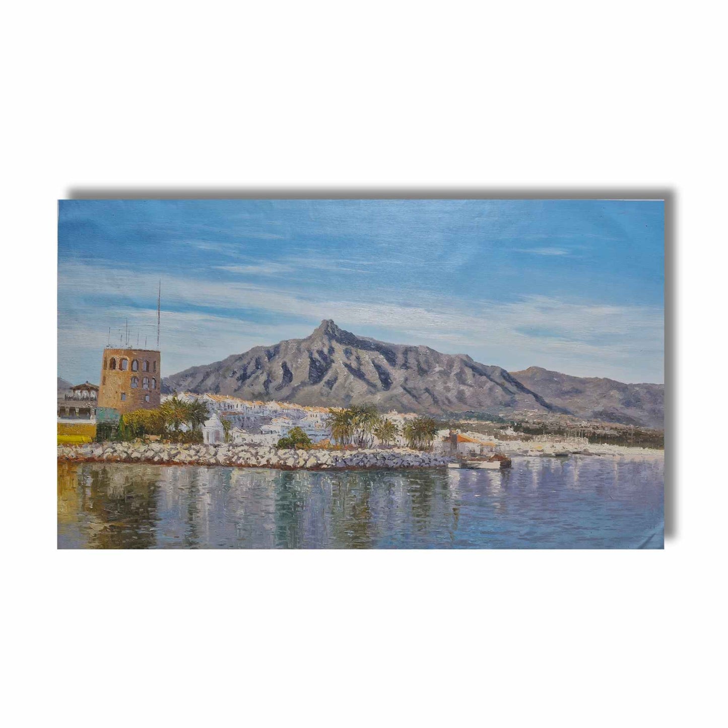 Cuadro al Óleo de Puerto Banús con La Concha 70x121 cm