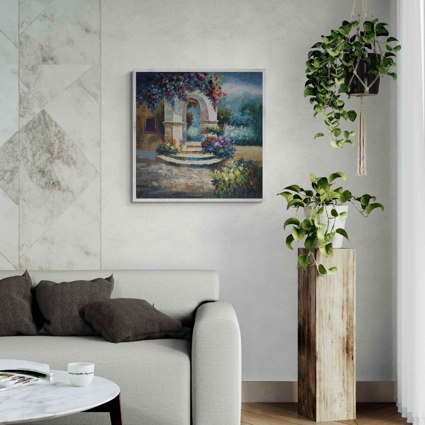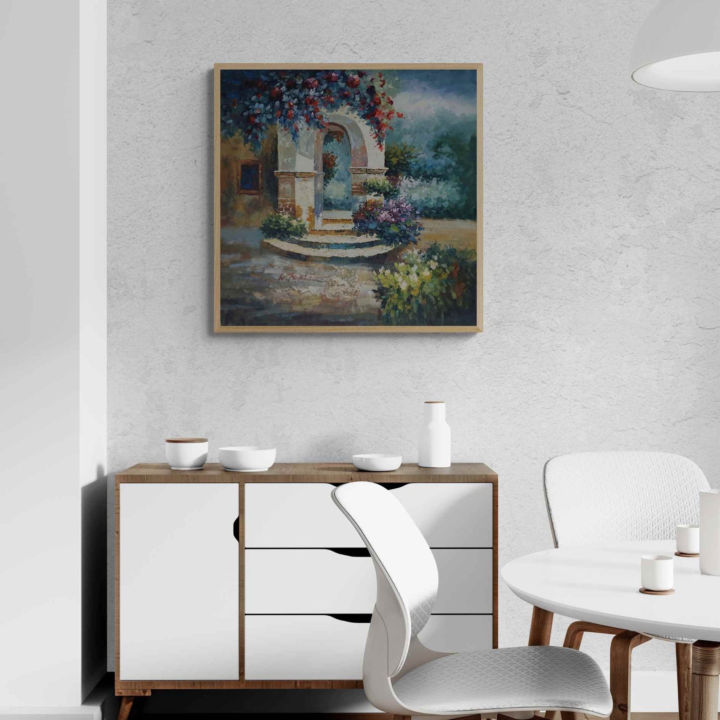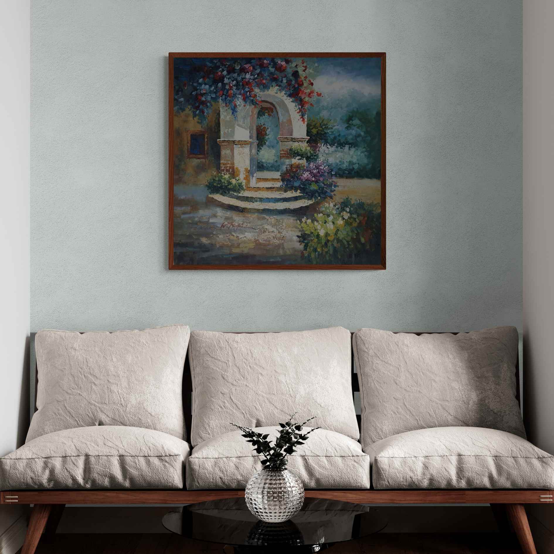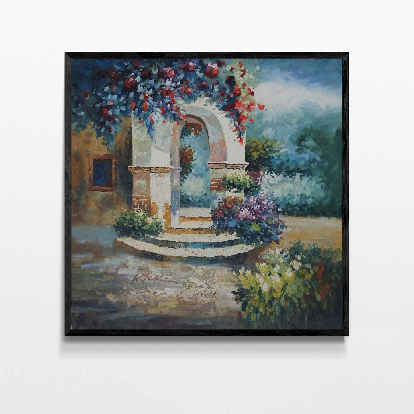 ¡Descubre la belleza de un jardín en tu propia casa con nuestro cuadro de un arco de flores pintado a mano al óleo! Con detalles realistas y colores vivos, este cuadro dará vida y alegría a tu hogar.