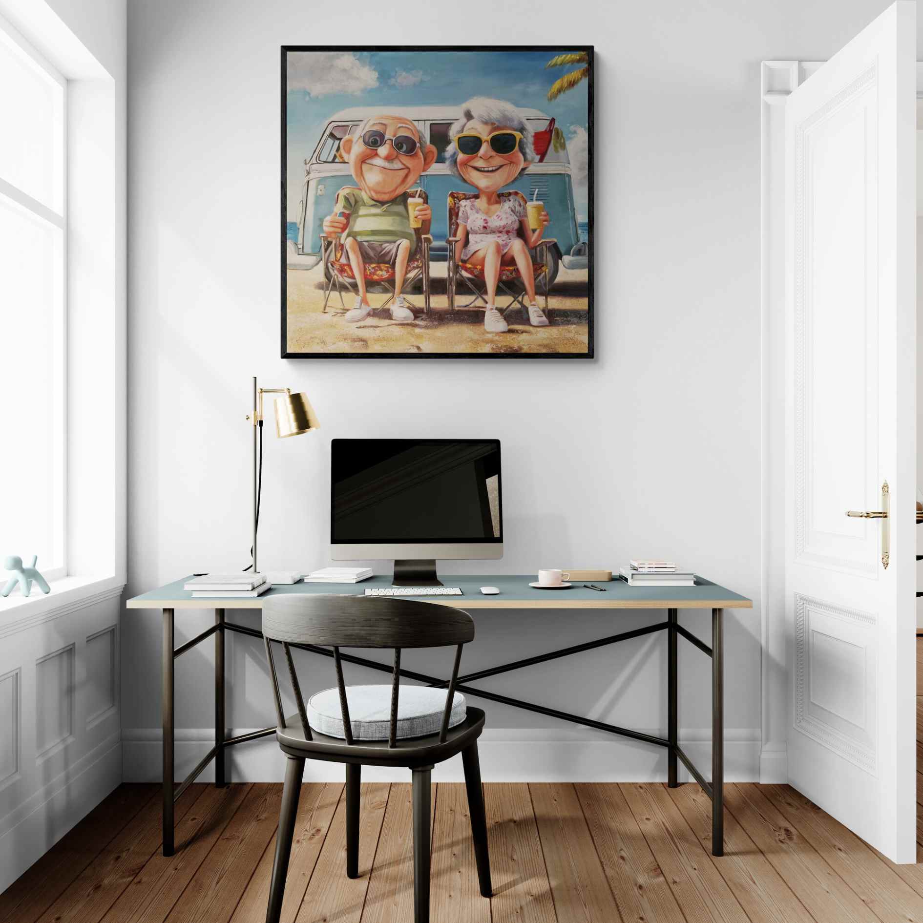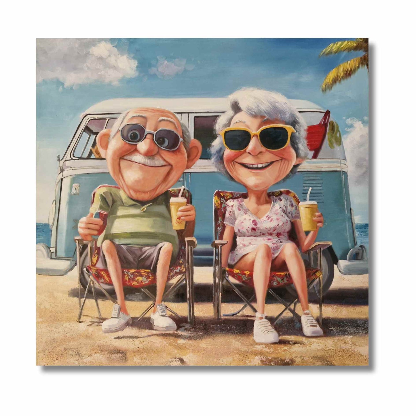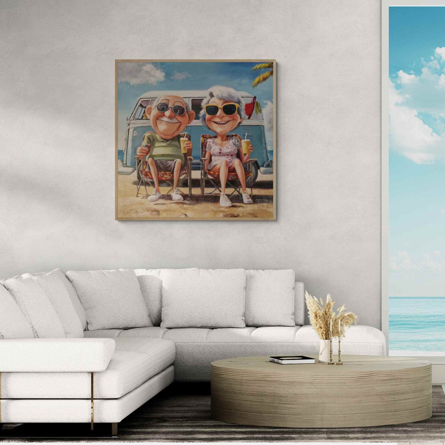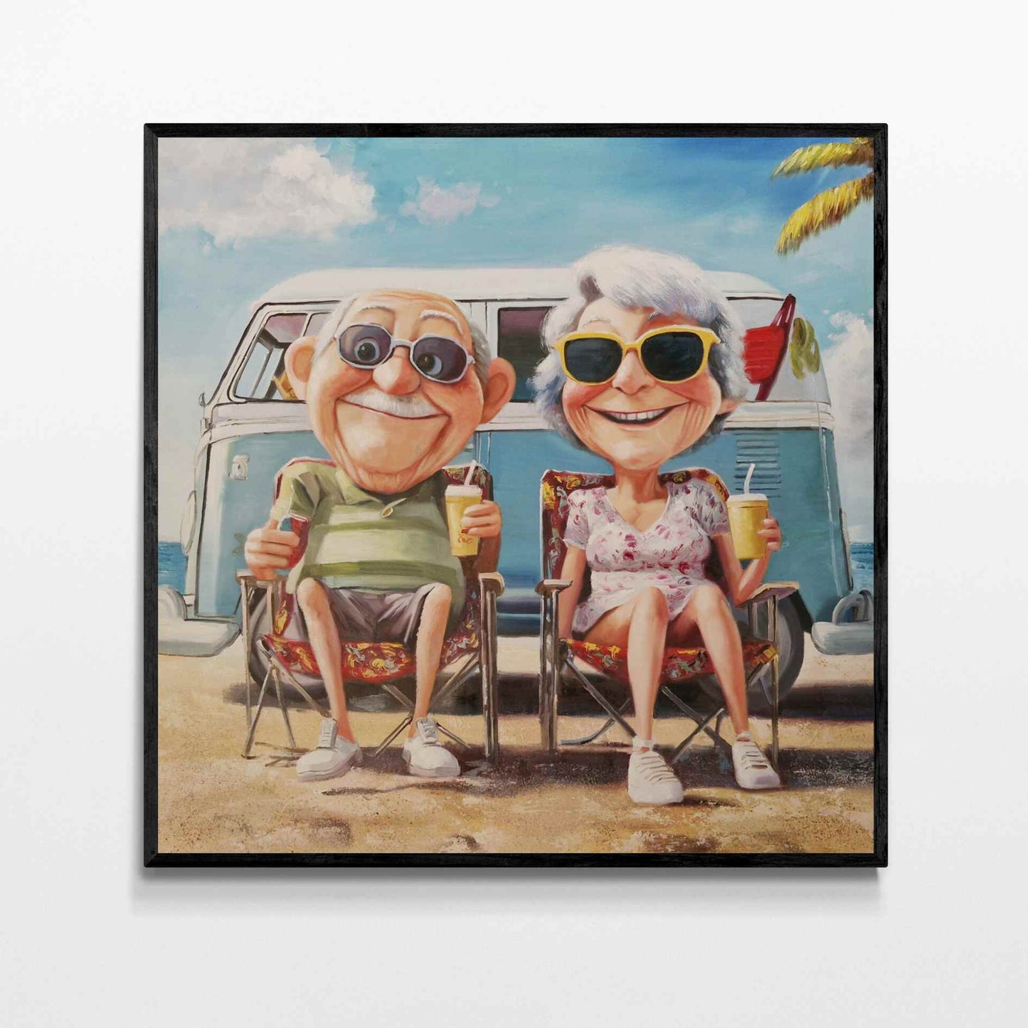 Cuadro Pareja Jubilada, Camper y Playa 92x92 cm