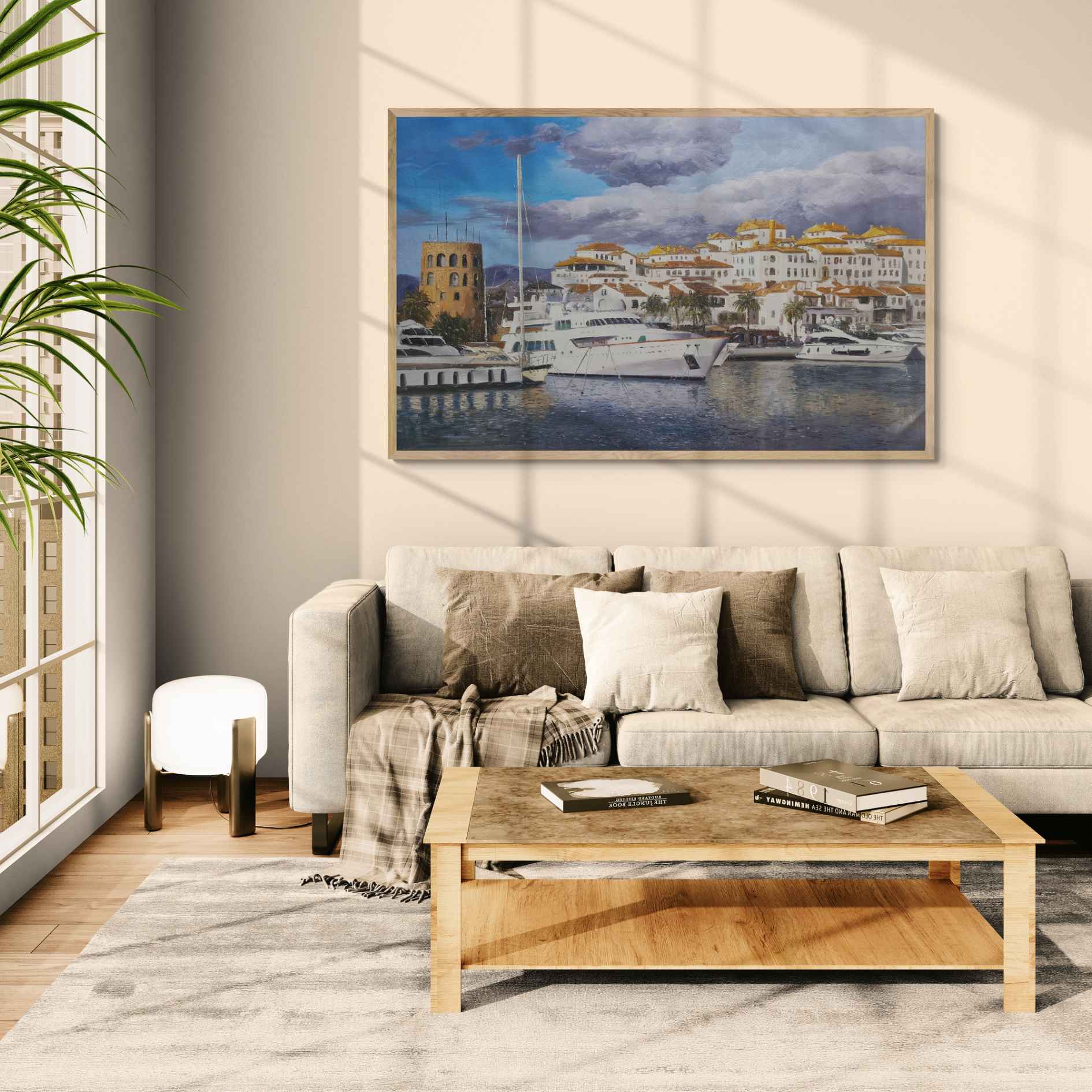 Convierte tu espacio en un rincón de la Costa del Sol. Compra ahora y recibe un auténtico óleo de Puerto Banús.