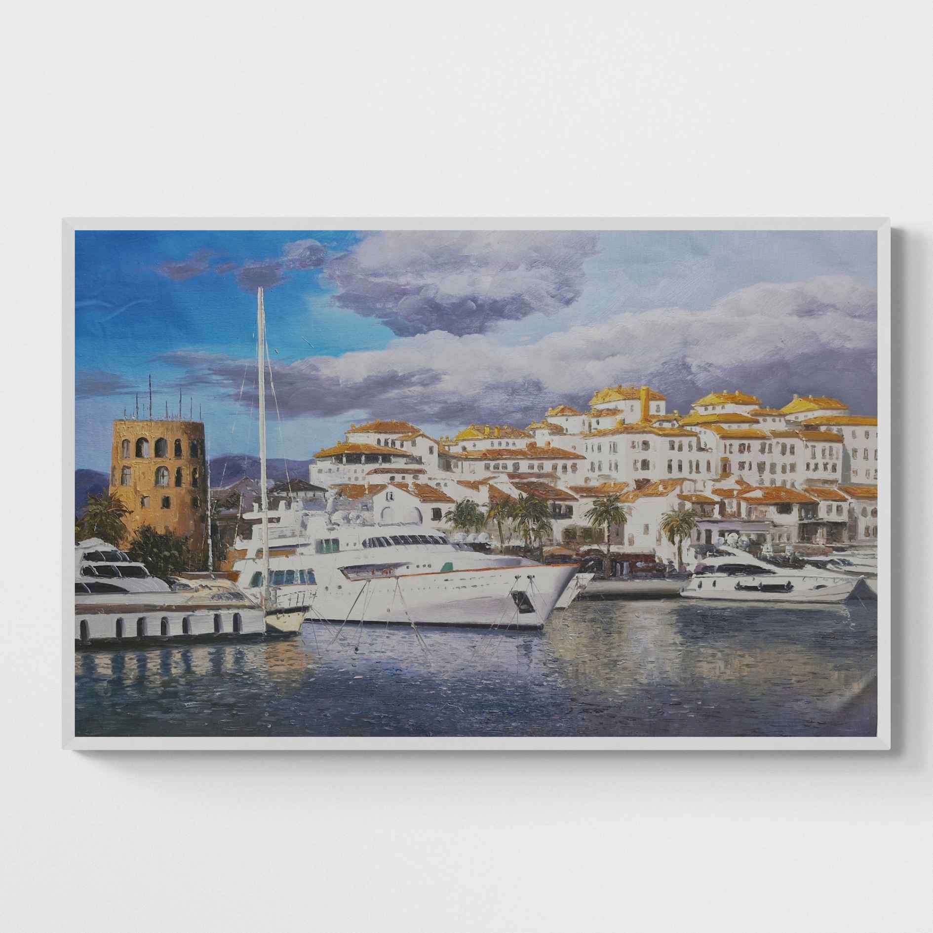 Decora tu hogar con el glamour y la belleza de Puerto Banús con este impresionante cuadro al óleo pintado a mano.