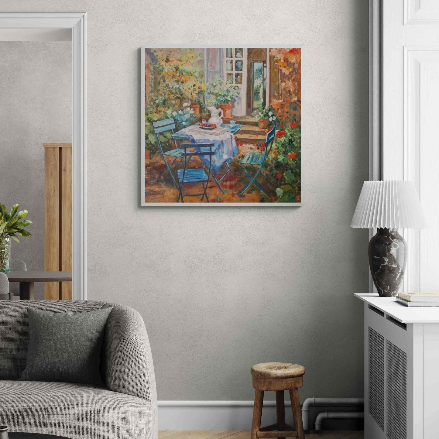 Vas a comprar una pintura al óleo realizada por uno de nuestros artistas y en la mayoría de los casos solamente tenemos una pieza. Disponemos de un servicio de fotomontaje para que puedas ver como queda este cuadro en tu hogar y también que color de marco te gusta más.