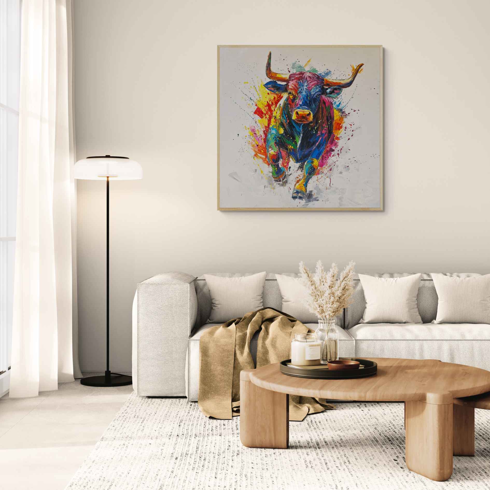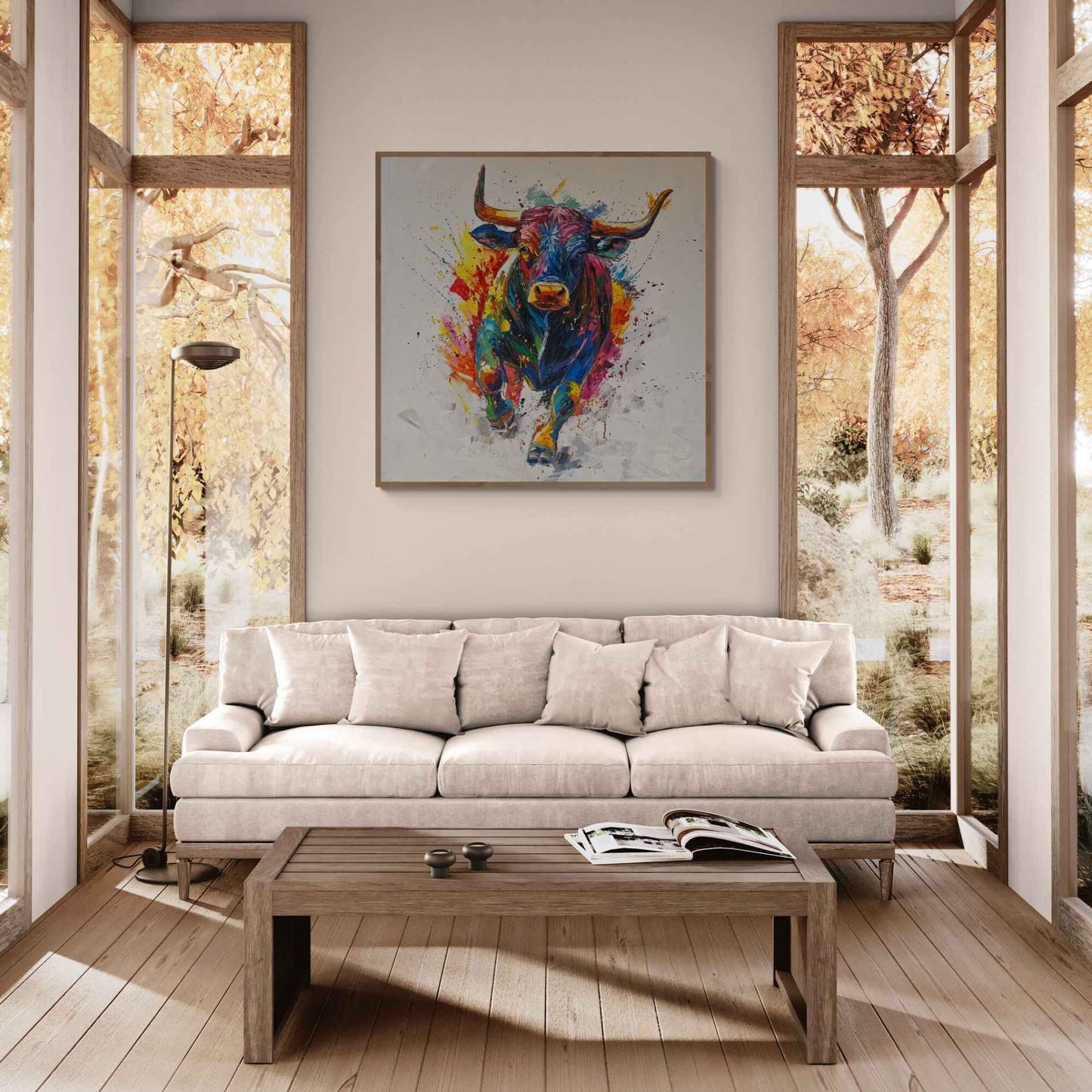 Pintura Moderna de Toro en Colores Vivo 100x100 cm